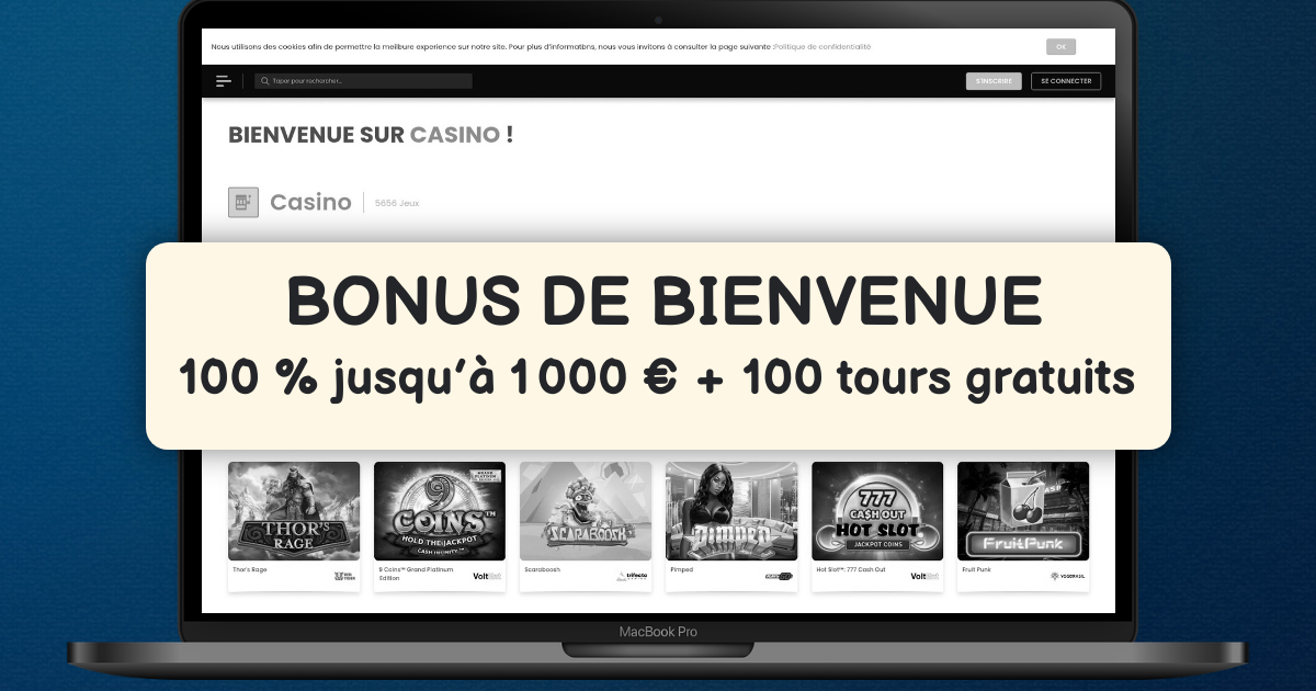 Le bonus de bienvenue offre jusqu'à 100€ et 225 tours gratuits, répartis sur plusieurs jours, avec un dépôt minimum de 20€ et surtout sans aucune condition de mise.